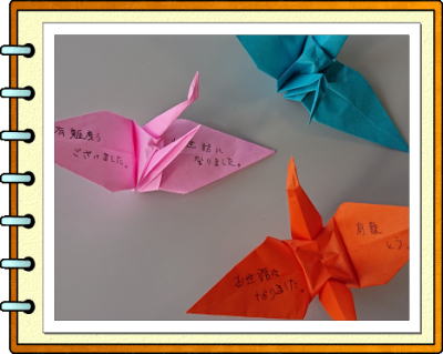 先日、退院された患者さんのお部屋に、そっと折り鶴が置かれていたのですが、ステキなメッセージが添えられていました。